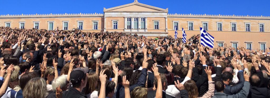 Δεν είναι δυνατόν, διότι δεν είναι λογικό και δίκαιο, να συνεχίσουμε, οι πολλοί, να δυστυχούμε επειδή κάποιοι ελάχιστοι μάς έχουν κλέψει ύπουλα το Συνταγματικό μας δικαίωμα να είναι ο λαός, η κοινωνία, εμείς, που αποφασίζουμε για τη ζωή μας, όπως αρμόζει στη Δημοκρατία.